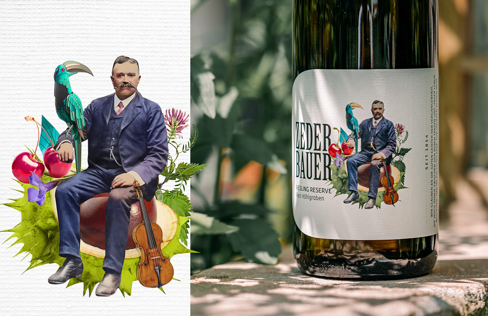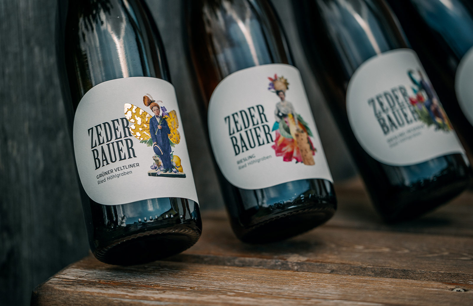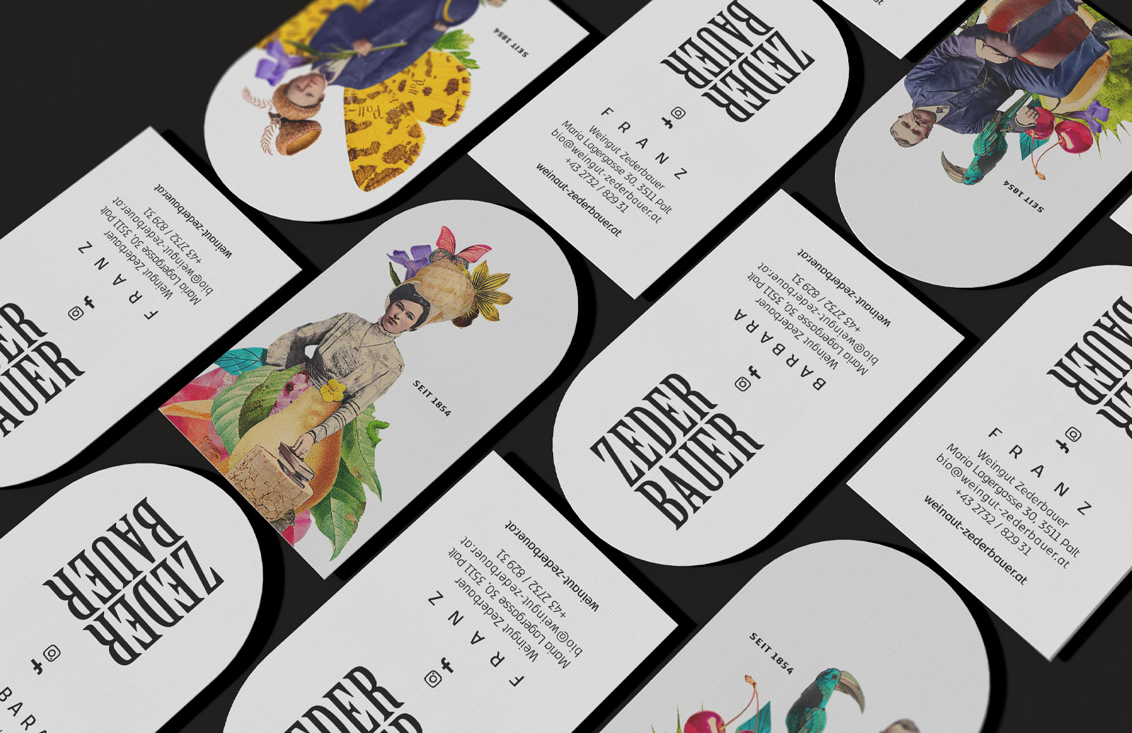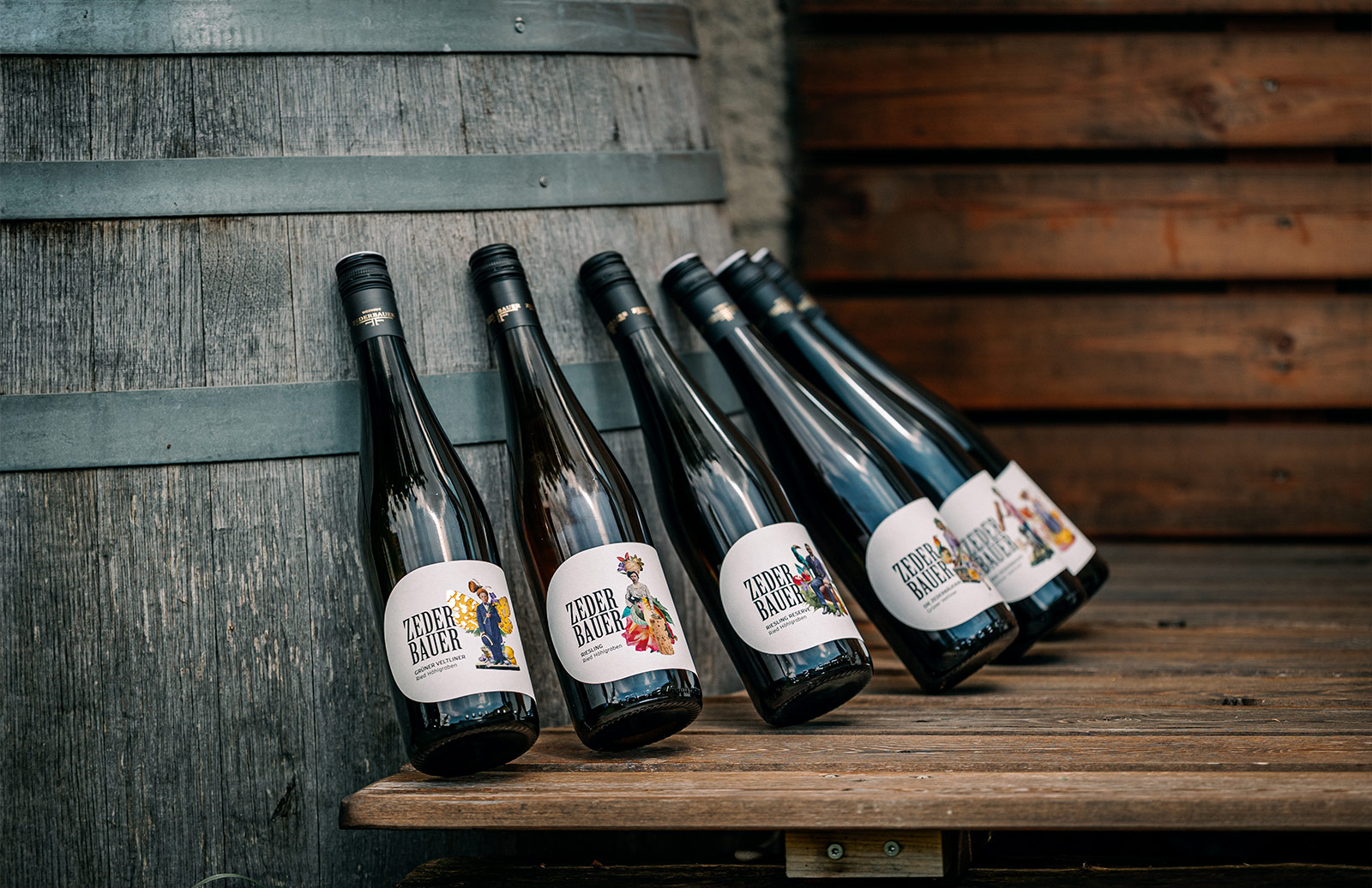 Die Bildwelt dieses Weinguts erzählt von Generationen, Persönlichkeiten und Herkunft. Illustrationen, inspiriert von historischen Familienaufnahmen, übersetzen Tradition in eine eigenständige visuelle und charakterstarke Sprache. Verwendet auf Etiketten, Visitkarten, Roll-Ups und Broschüren. Ergänzend dazu entstanden einige Fotoshootings: mit Franz & Barbara, ihrem Wein, ihren Autos und toller Umgebung. Für diese gestalterische Arbeit wurde das Projekt beim niederösterreichischen Werbepreis „Goldener Hahn“ in der Kategorie Verpackung mit Gold ausgezeichnet.